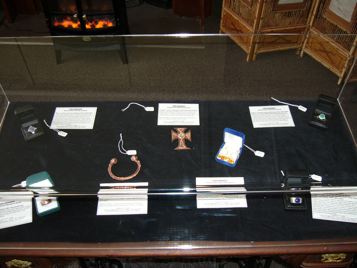 Display cases straight ahead as you enter shop - my work is displayed in these. |