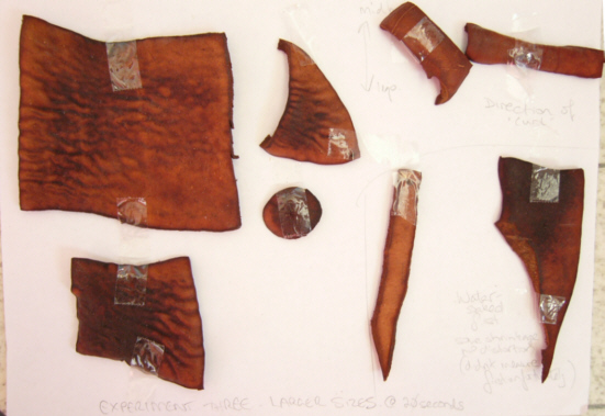 SECOND SHRINKAGE TEST After a break from experimenting for four months, I decided to check whether larger pieces shrink at the same rate as the smaller pieces in the first shrinkage test (With hindsight, I should have done this before doing the gauntlet testing!).